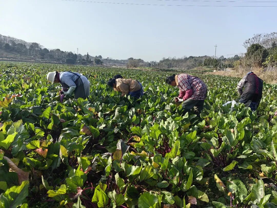 “我们合作社每年红菜薹产量约100万斤,年产值达到500万元左右。”关昌华介绍,除了自种,合作社还以保价方式收购周边农户的红菜薹,通过抖音小店、拼多多等平台统一销售。目前,已带动20余户村民参与种植,并为40余人提供了就近就业的机会,平均每户年增收约5000元。