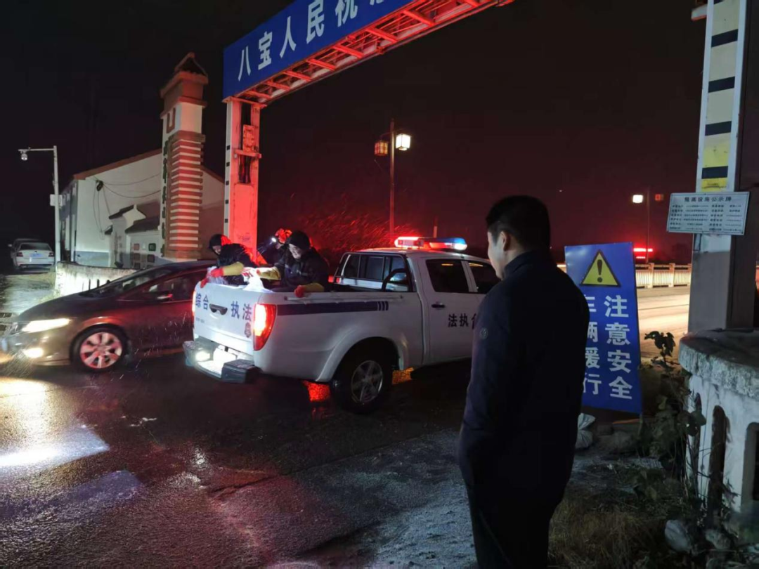 ▲沙道观镇组织专班对重点桥梁路段开展不间断巡查,联合交通部门提前撒盐融雪。镇村干部上门走访独居老人、困难群众,排查住房及用火用电安全。