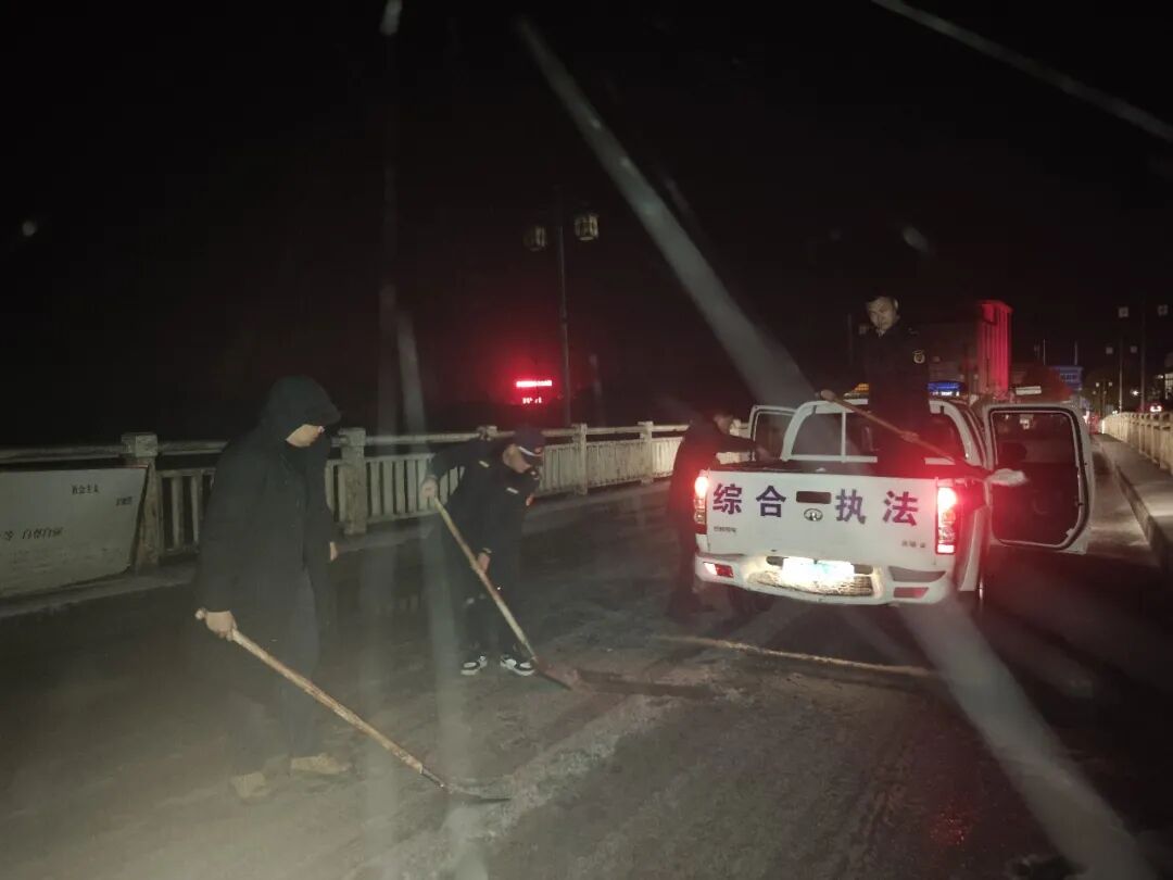 ▲乐乡街道组织道路安全专班人员对辖区主干道、桥梁、陡坡等重点路段展开排查,通过抛撒融雪剂、对高风险路段实施临时封闭等措施,全力保障车辆与行人出行安全。