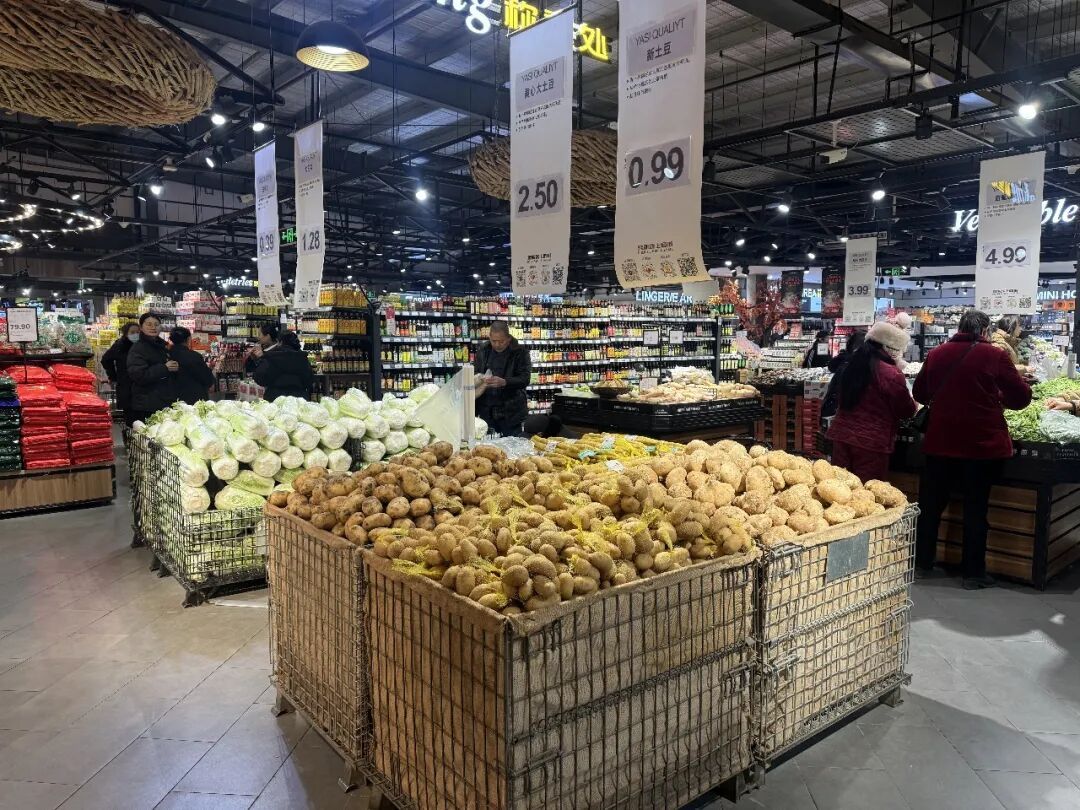 各大商超启动24小时补货机制,通过前置仓备货、产地直采等方式,确保货架不空、品类齐全。超市依托与本地蔬菜基地、畜禽养殖合作社建立的应急供货通道和畅通的物流网络,实现“产地直达货架”的快速调配。
