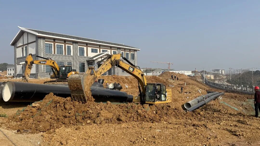 白龙埂水厂扩建工程主要包括取水与净水两大部分。取水工程采用浮船方式从长江取水,涵盖生活用水、工业用水及相关配套设施建设,于2024年3月开工,目前已全面建成。净水工程从2024年12月启动建设,目前构筑物主体基本完成。