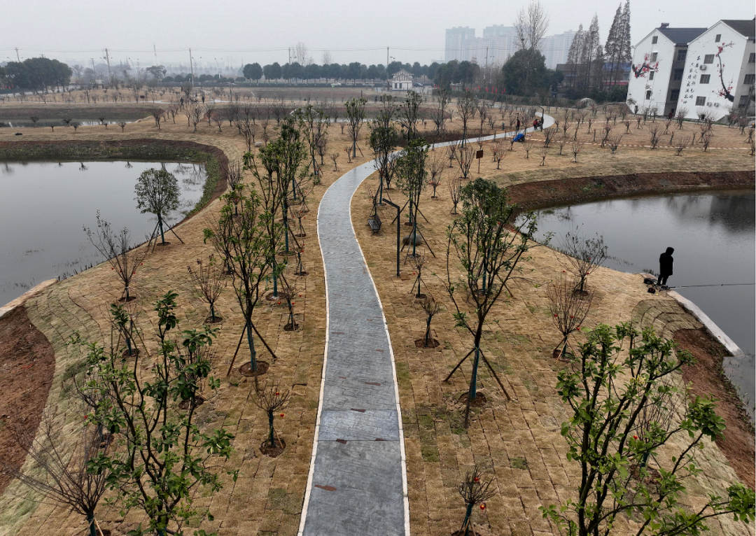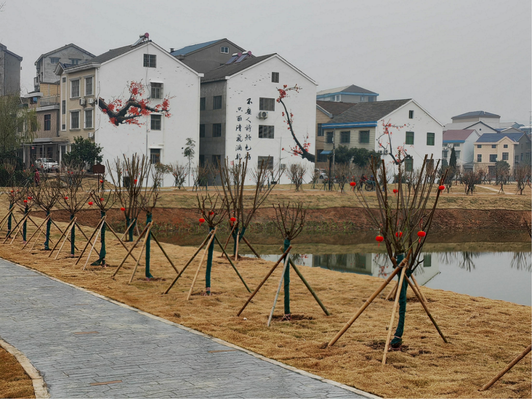 项目秉持“依势就形、以水塑形”的造园理念,以“知有和羹寻鼎实,未春先发看红梅”的意境,精心打造“梅”文化主题游园。园内栽植红梅、绿萼梅、腊梅等特色梅花树种共586株,沿游道布置南山红梅区、湿地红梅区、绿梅游憩区、腊梅观赏区,四区之间赏梅步道曲径回环、相互连通,错落有致、浑然一体。