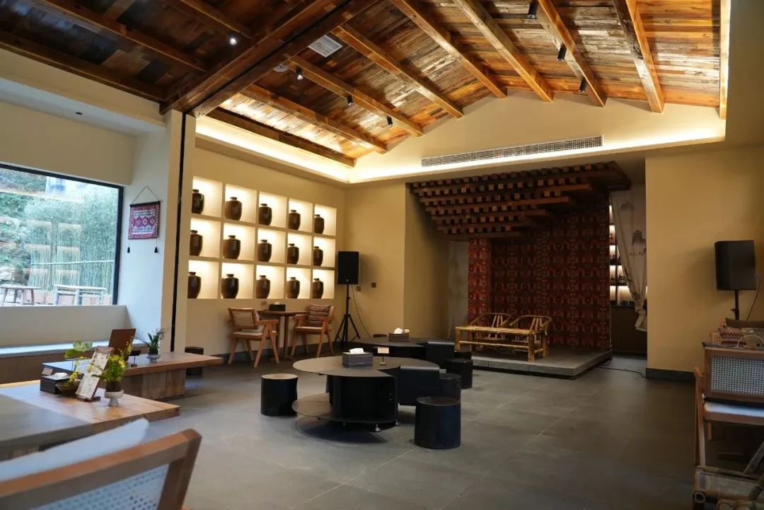 今天的黄林古驿, 依旧保留着那份古老的温馨与宁静, 墙上悬挂的老物件, 屋内陈列的古董酒具,都述说着过去的故事。在这里, 树木葱翠, 溪流环绕, 无论是品尝美食, 还是欣赏美景, 都使人流连忘返。
