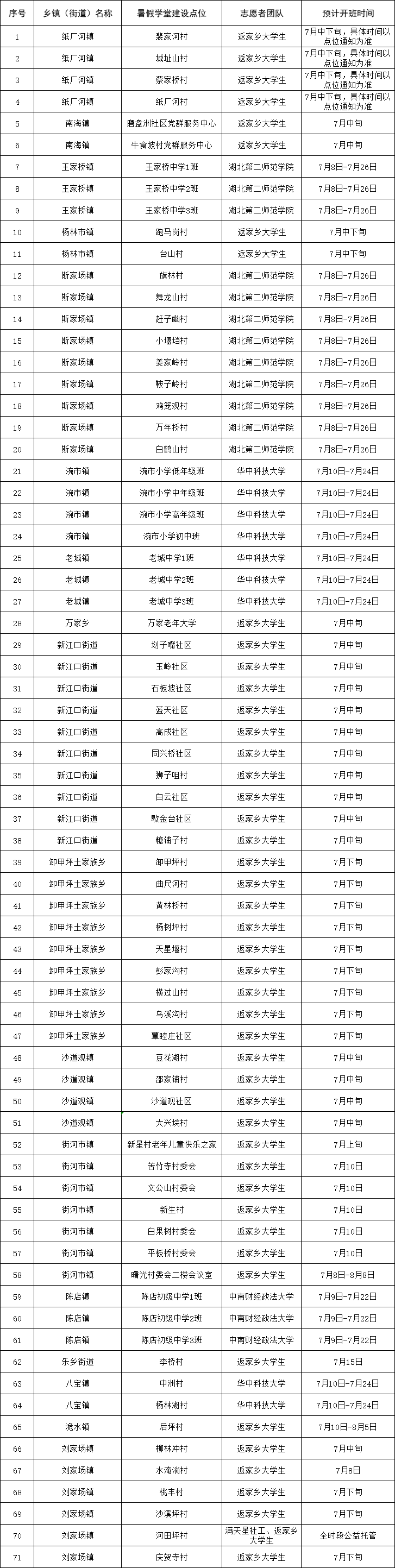 2024年7月8日起陆续开班