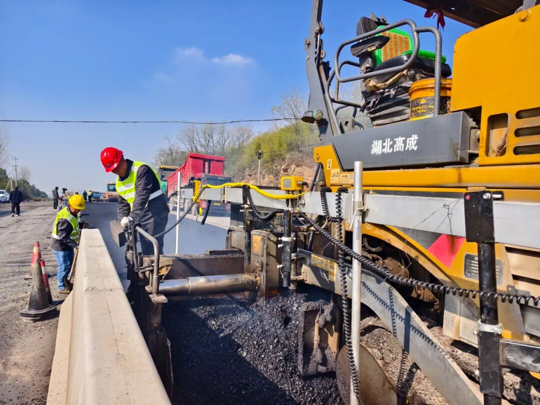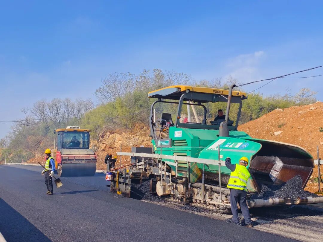 施工现场,多辆沥青摊铺车沿路作业,压路机来回压实,一派热火朝天的场景。工程技术负责人易亚军介绍,项目部每天投入40余名施工人员,机械设备、运输车辆40余台,沥青混凝土搅拌站满负荷生产,确保如期完成公路改建工程。