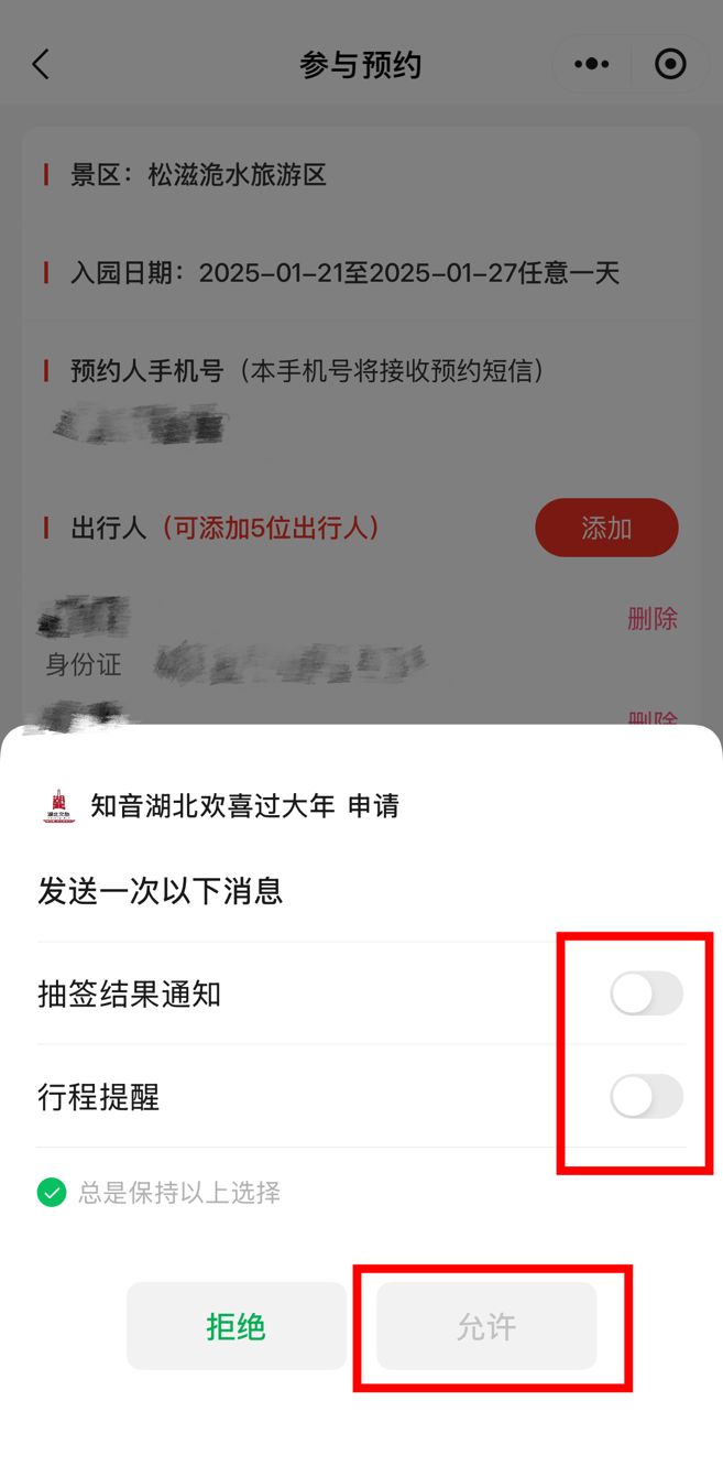 第五步:允许抽签结果消息通知,提交预约报名信息