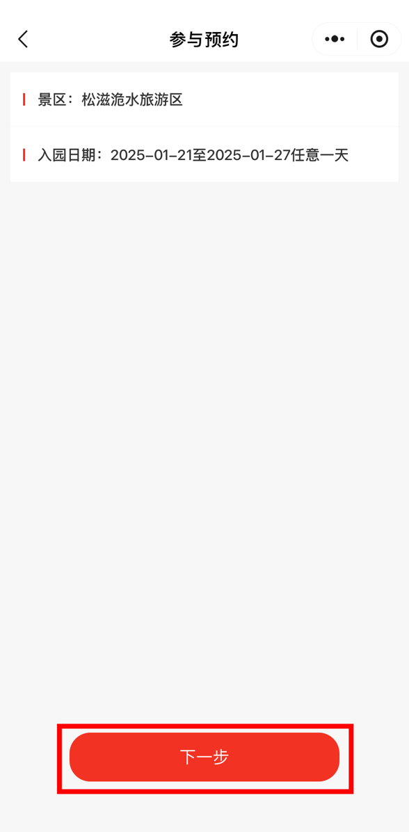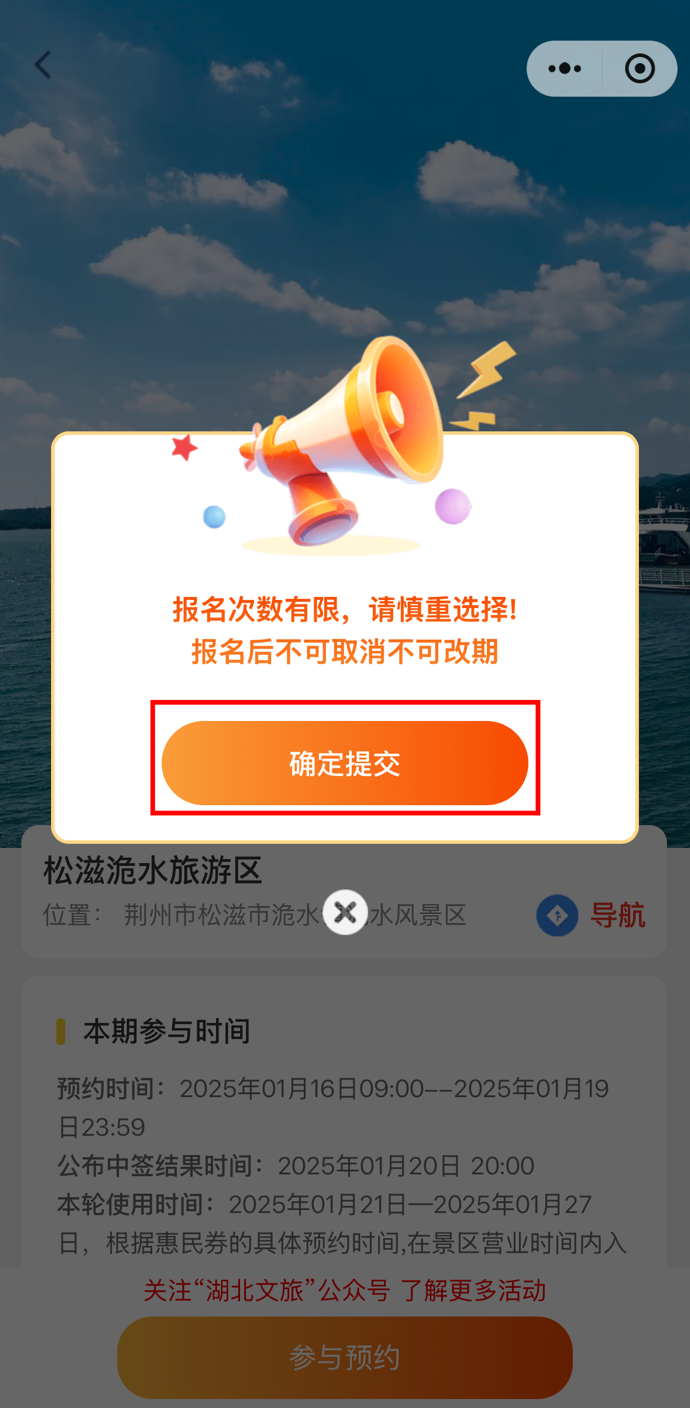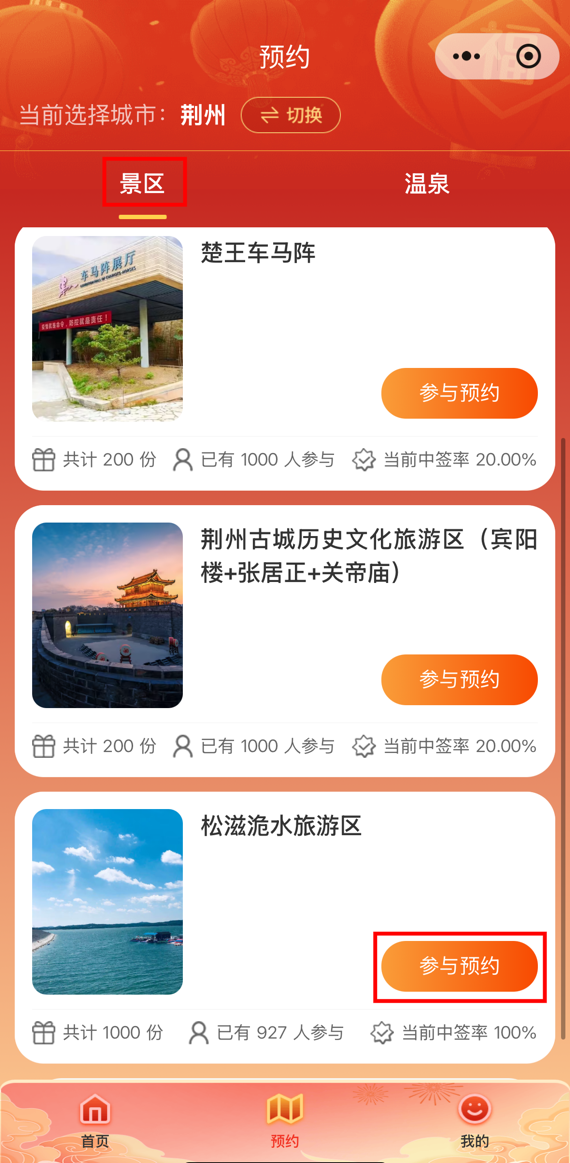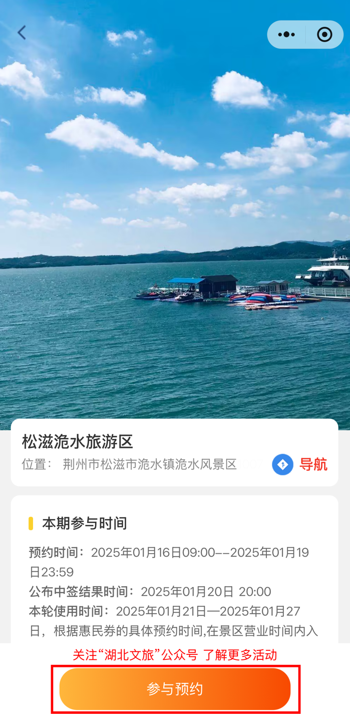 第三步:查看项目列表及详情后选择项目(松滋洈水旅游区、松滋曲尺河温泉度假村预约界面如下)