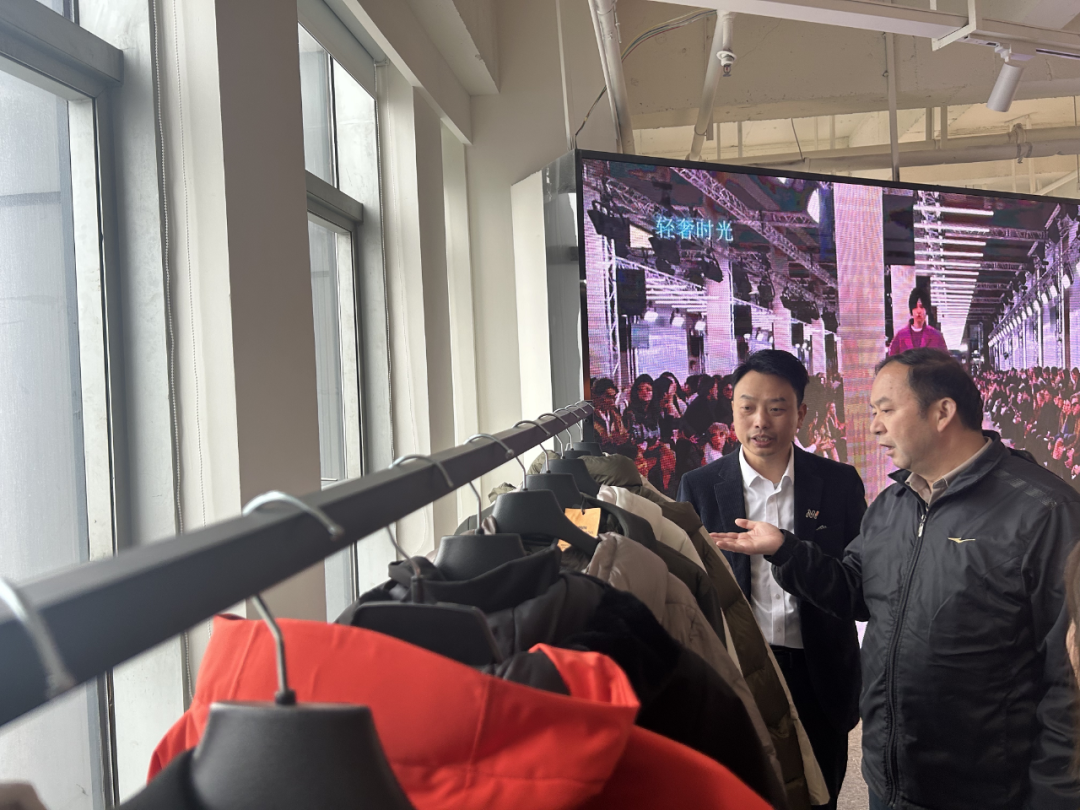 ▲市人大常委会主任覃文忠带队考察重庆飞盈服装等企业。