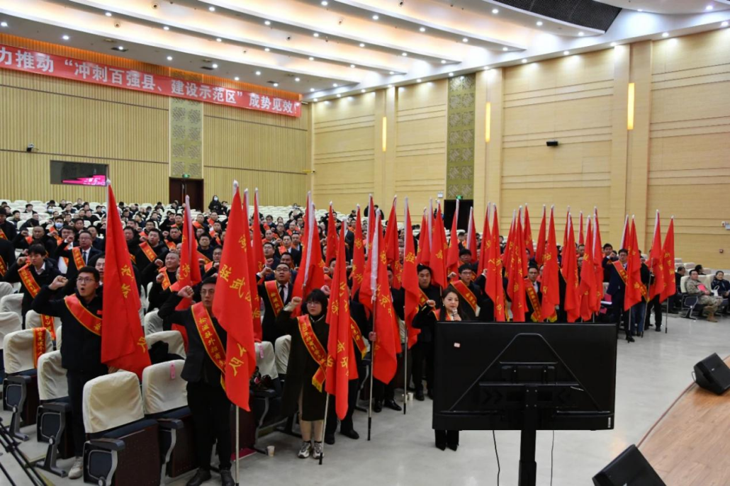 ▲125名驻外招商队员庄严宣誓、接旗出征。