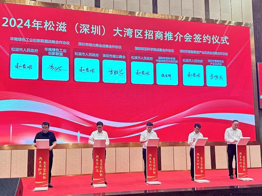 ▲4月26日,松滋市2024年大湾区招商推介会在深圳举行,活动为松滋招商大使授牌,并与8家企业签约。