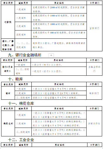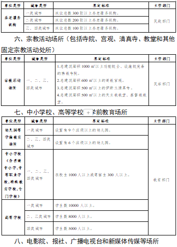 政法、司法、工会、人防、能源、国资管理等部门主管的机关、团体、企业、事业单位,应按本标准相应类型标准执行。县级以上党委、政府、人大、政协机关和相关部门的办公场所,应按照建筑规模、火灾风险等级等因素由各级消防救援机构综合判定。无对应主管部门的单位(场所),由单位按程序向消防救援机构申报重点单位。