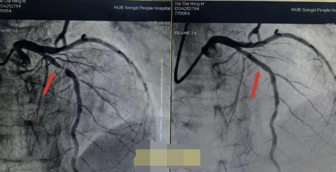 涴市镇卫生院急救人员立即执行医嘱,并通过救护车转运患者至市人民医院,直接到导管室进行介入治疗。术后患者胸闷症状缓解,生命体征平稳,未见出血等不良反应。