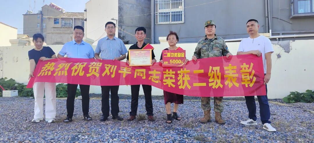 (记者 陈岳)近日,新江口街道青峰山社区现役军人刘丰在部队荣获二级表彰,市人武部、市退役军人事务局、新江口街道组建工作专班,带着党和政府的关怀与温暖,为其家属送去立功喜报。