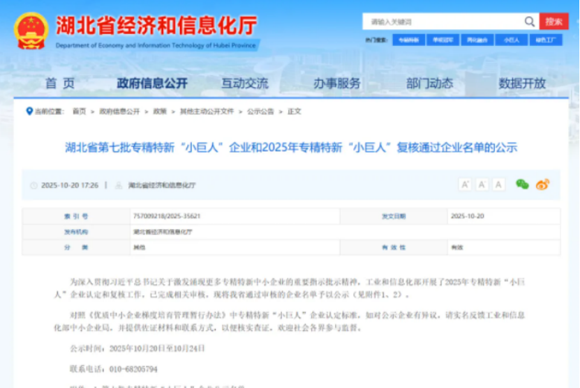 湖北省经济和信息化厅公示