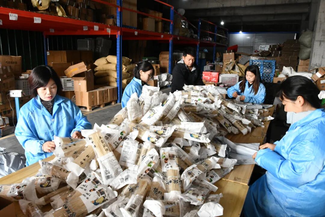 走进位于松滋市电子商务公共服务中心的发货区,晶地葛根粉条、玫瑰坚果葛根粉等产品正从自动化流水线上鱼贯而出,等待物流车辆揽收。