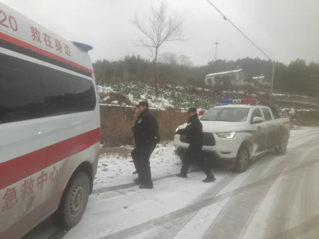 急救中心立即调派松滋市第二人民医院救护车赶往现场。桃丰村平均海拔400米以上,山路崎岖,弯多路陡,出行不便。持续的雨雪导致路面结冰,部分路段已实行交通管制,救护车无法直接抵达,而距患者的家还有近4公里。