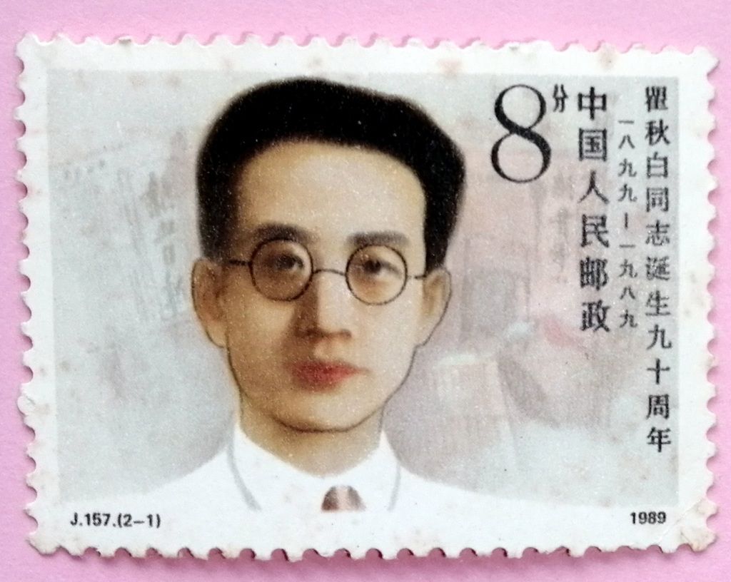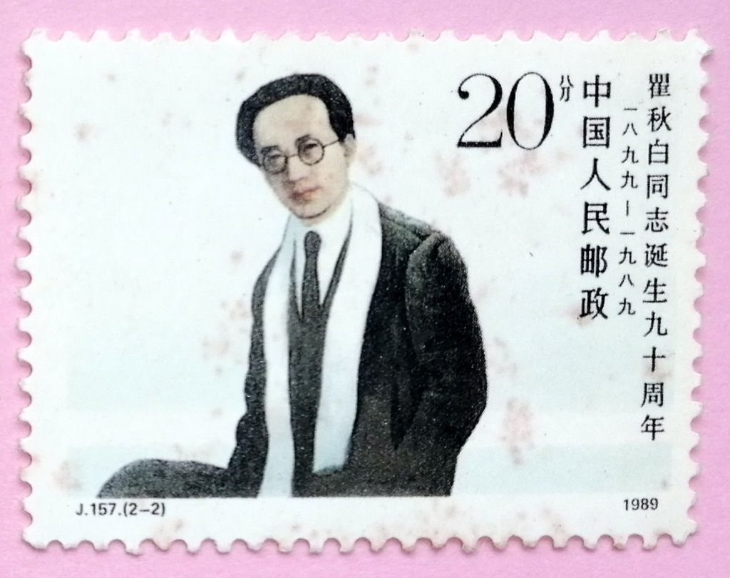 1989年1月29日,中国人民邮政发行《瞿秋白同志诞生九十周年》纪念邮票,一套2枚,面值分别为8分、20分。